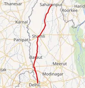 Akshardham - Khajoori Khas - Loni, Ghaziabad - Khekra - Baghpat - Baraut - Kandhla - Shamli - Rampur Maniharan - Saharanpur - Behat