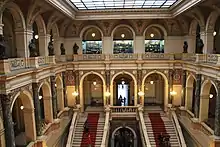 Due to the major reconstruction, the museum was closed between 7 July 2011 and 28 October 2018.[5] Seven million items had to be relocated to the museum’s depositories, in what has been dubbed the biggest moving of museum collections in Czech history.[6] In February 2019, the museum's dome was opened for the first time, which also serves as a view of Prague. The eastern courtyard was also opened and was for the first time roofed, during reconstruction. Since November 2019, the underground corridor connecting the Historical Building to the New Museum Building is newly accessible.