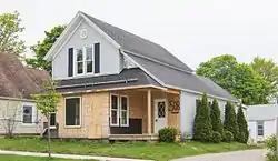 Petoskey | Shafer's Grocery and Residence consists of two attached structures: a single-story frame commercial store, and an attached two-story gabled residence with a front porch running the full width of the house. |
