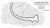 Wheatland | Lone effigy of a water spirit. The curvature of the tail is unusual in effigy mounds.[21] Photographed from a plane in 1927, it was only the second known instance of aerial photography for archaeological purposes in the U.S.[22] |