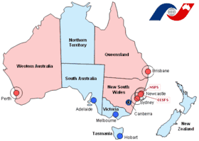 A strong contingent of chapters is located in Australia. Prior to the NSI-L5 merger, the L5 Society had been developing chapters around the world, and in Australia, three chapters had been established. The 'Southern Cross L5 Society' was formed in 1979, with groups in Sydney, Adelaide (in 1984) and Brisbane (in 1986). It was decided in late 1989 to create the National Space Society of Australia (NSSA) which could act as an umbrella organization