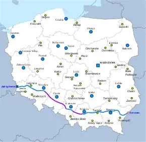 | Major cities | Legnica, Wrocław, Opole, Gliwice, Katowice, Kraków, Tarnów, Rzeszów | |||