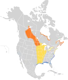 Their breeding habitat is marshes on the Atlantic coast of Canada and Maine, central Canada, (the Canadian Prairies region and a coastal strip on the south of Hudson Bay), and the north central United States. The nest is an open cup attached to vegetation and close to the ground. Due to their proximity to the ground, they are vulnerable to habitat loss and are at risk due to rising sea levels.[3] Males compete for females but do not defend territories; they sometimes help feed the young. Mating is largely promiscuous by both sexes; multiple paternity in a nest is common.