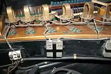 Thinner and shorter strings were grouped into 18 clusters[6] of 5 strings each. The clusters all converged towards a pickup[7] followed by a membrane-less microphone. The oscillations were correspondingly transformed into electrical signals in a varying alternating current, which was made to pass through an adjustable electronic circuit comprising electron tubes, capacitors, resistors, etc., that acted as a filter.[8] The filtered signal was then amplified with a three-tube valve amplifier and broadcast through a pre-built loudspeaker.[8]
