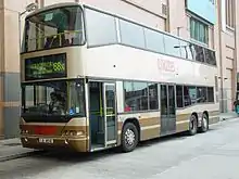 Neoplan Centroliner was the third type of German double-decker introduced in Hong Kong (the first being the Mercedes-Benz O305, and the second the MAN 24.350 HOCLNR-NL). A total of 193 Neoplan Centroliner double-deckers were introduced to Hong Kong by Kowloon Motor Bus (KMB) and New World First Bus (NWFB).