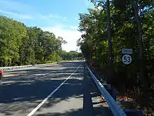 What is now Route 53 was once part of a Lenape Trail running from Morristown to Denville.[4] In 1916, present-day Route 53 was designated as part of pre-1927 Route 5, which ran from Delaware in Warren County east to Newark.[5] In the 1927 New Jersey state highway renumbering, this route became Route 6 (now U.S. Route 46) between Delaware and Denville, Route 32 (now U.S. Route 202) between Morris Plains and Morristown, and Route 24 (now Route 124) between Morristown and Newark. The portion of pre-1927 Route 5 between Morris Plains and Denville, however, was not replaced by a different route and became Route 5N to distinguish it from a newly created Route 5.[6] The northern terminus of Route 5N was at U.S. Route 46/Route 6 (Bloomfield Avenue) in Denville; when those routes were moved to a bypass, Route 5N's northern terminus remained at Bloomfield Avenue.[7] In the 1953 New Jersey state highway renumbering, Route 5N was renumbered to Route 53.[8]