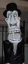 It has been called "New York's Carnival." The parade is largely a spontaneous event as individual marchers can just show up in costume at the starting point without registering or paying anything.[4][5] The parade's most signature features are its large puppets which are animated by hundreds of volunteers. The official parade theme each year is applied to the puppets.[6] In addition to the puppets, the website reports that more than 50 marching bands participate each year. In addition, there are some commercial Halloween parade floats.