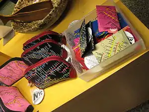 There are several privately produced schematics that are available either online or in published form—such as KickMap, a hybrid diagram subway map that shows each route on its own line segments plus New York's parks, streets and neighborhoods;[46] and Bullet Map, a map that shows bus and rail connections in more complexity.[47] Additionally, the New York City Subway map has served as the subject of artistic endeavors. Among these are works by Fadeout Design and by Alexander Chen.[48][49] In the past, companies such as Hagstrom Map had also published New York City Subway maps.[5]
