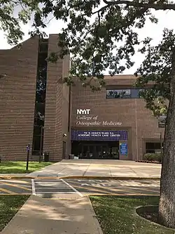 The New York Institute of Technology College of Osteopathic Medicine (NYIT-COM) is a private, non-profit medical school for osteopathic medicine located primarily in Old Westbury, Long Island in the U.S. state of New York. It also has a degree-granting campus in Jonesboro, Arkansas. Founded in 1977, NYIT-COM is an academic division of the New York Institute of Technology. Formerly known as the New York College of Osteopathic Medicine, it is one of the largest medical schools in the United States.[7][8]