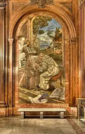During the 1930s, Works Progress Administration (WPA) workers helped maintain the Main Branch. Their tasks included upgrading the heating, ventilation, and lighting systems; refitting the treads on the branch's marble staircases; painting the bookshelves, walls, ceilings, and masonry; and general upkeep.[65][66] The WPA allocated $2.5 million for the building's maintenance.[67] In January 1936, it was announced that the Main Branch's roof would be renovated as part of a seven-month WPA project.[68]