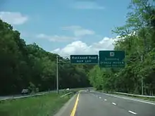 In 1965, Rockefeller unveiled plans for the Potantico Expressway, a connector from the to-be-constructed Hudson River Expressway (NY 9A) to the Taconic State Parkway.[13] Some opposition to the idea arose on the grounds that the new highway would only benefit the Rockefeller estate and not the residents.[14] Nonetheless, construction began on the Potantico Expressway (now known as Phelps Way) in 1969. When the highway was completed in November 1970, it became part of a rerouted NY 117. NY 117's former alignment along Bedford Road became NY 448.[15][16][17] The Hudson River Expressway project was cancelled in 1971,[18] and the western stub of the expressway now serves Phelps Hospital.[19]