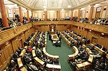 The House of Representatives is a democratic body consisting of representatives known as members of parliament (MPs). There are usually 120 MPs, though this number can be higher if there is an overhang.[2] Elections take place usually every three years using a mixed-member proportional representation system which combines first-past-the-post elected seats with closed party lists. 72 MPs are elected directly in single-member electoral districts and further seats are filled by list MPs based on each party's share of the party vote. A government is formed from the party or coalition that has the support of a majority of MPs.[2] If no majority is possible, a minority government can be formed with a confidence and supply arrangement. If a government is unable to maintain the confidence of the House then an early general election can be called.