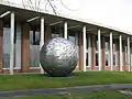 The Campus has a number of artworks. A piece entitled 'The Globe', designed by Planet Art in nearby West Bromwich, was installed outside of the new library building in May 2012. 'The Globe' includes quotations from John Henry Newman on faithfulness and commitment.[42] A statue of John Henry Newman, designed and created by Tim Tolkien, is in the Ryland Quad of the campus.[43]