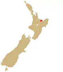 It is also within the wider territory of the Bay of Plenty Regional Council.[3]