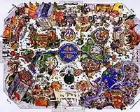 On November 2, 2005, Viacom filed a trademark for Nickelodeon Universe.[7] The park's new licensing deal and name, "Nickelodeon Universe", was announced on July 25, 2007.[8] Construction began on August 27, 2007, work was completed in sections so 80 percent to 90 percent of the park remained accessible at all times. Nickelodeon Universe was completed on March 15, 2008.[9] New rides include SpongeBob SquarePants Rock Bottom Plunge, a Gerstlauer Euro-Fighter style coaster themed after the Nickelodeon show SpongeBob SquarePants, the Splat-O-Sphere, a tower drop-ride in the center of the park, the Avatar Airbender, a surf-rider attraction located in the center of the park as well and Brain Surge which is on the side of the park. The shooting gallery beneath the Ripsaw/Orange Streak roller coaster was gutted and was replaced by Rugrats Reptarmobiles. The Mystery Mine Ride was completely demolished to make way for SpongeBob SquarePants Rock Bottom Plunge. This site also included an Old Time Photography studio and restrooms. Old Time Photography relocated into the mall (but not within the park) and restrooms did not return in this section of the park. Levy Restaurants partnered with Nickelodeon Universe to include a themed restaurant at the park. The restaurant was called EATS and was located in the former Park at MOA food court. When the partnership ended, the EATS area closed and was replaced with a butterfly display. In 2014, a Hard Rock Cafe opened on the site where EATS once stood.