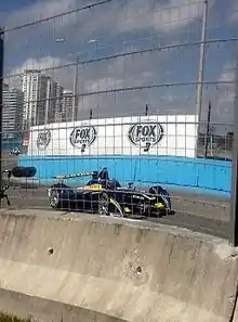 On 30 June 2014, Prost signed up for the inaugural FIA Formula E Championship with the team e.dams Renault.[4] At the first race in Beijing, Prost became the first man to achieve a pole position in Formula E. He led the race until the last lap in the last corner where he was involved in a heavy crash with Nick Heidfeld. Prost turned into Heidfeld's car when he was being challenged into the last corner, lunging Heidfeld's car into a barrier. He later apologised for the incident.[5] He was subsequently given a ten place grid penalty for the following race in Malaysia.[6] In the second race in Putrajaya, Malaysia, he took pole position again but was given a ten place grid penalty carried from the previous race. He took his first win in Miami, despite a late challenge from Scott Speed. The result was enough for Prost to take the lead in the drivers' championship from Lucas di Grassi.