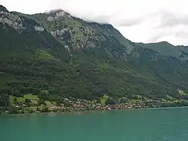 The village occupies a narrow strip of land between the lake and the mountains so there was very little land for farming. During the 19th century some tourists visited the village and in 1877 a pier was built for the tourist steam ships. In 1916 the last leg of the Brünig railway line was completed, which passed through the narrow village.[3]