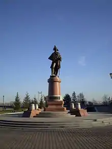 Nikolai Petrovich Rezanov (Russian: Николай Петрович Резанов) (28 March [O.S. 8 April] 1764 – 13 March [O.S. 1 March] 1807) was a Russian nobleman and statesman who promoted the project of Russian colonization of Alaska and California to three successive Emperors of All Russia—Catherine the Great, Paul, and Aleksander I. Aleksander I commissioned him as Russian ambassador to Japan (1804) to conclude a commercial treaty. In order to get there he was appointed co-commander of the First Russian circumnavigation (1803-1806), led by Adam Johann von Krusenstern. Rezanov departed the expedition when it reached Kamchatka after visiting Japan. He was also the author of a lexicon of the Japanese language and of several other works, which are preserved in the library of the Saint Petersburg Academy of Sciences, of which he was a member. Rezanov's biggest legacy was the Russian-American Company.