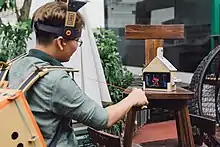 Nintendo Labo developers Kawamoto, Sakaguchi, and Ogasawara stated in an interview that their goal was to use the unique features of the Nintendo Switch in such a way that no other system could emulate. The Joy-Con were treated as a "bundle of sensors" that could be used in a multitude of ways by attaching them to different hardware pieces, focusing on the gyro motion-sensor, IR motion camera, and HD Rumble features.[9] The team was tasked with exploring Joy-Con attachment and game prototypes during three weeks of brainstorming sessions, called "prototype parties."[10][11] When asked about the choice of building material, the developers responded by saying that cardboard was chosen over plastic because the 3D printer they were using for prototyping was unable to keep up with their pace of testing; cardboard would also allow for the player to create, repair, and customize the project themselves.[12] The initial construction designs were first thought as being simple to construct, but later proved to be complex and challenging when it was decided that no cutting or gluing would be required to assemble the kits. Improvements were made to the prototypes based on feedback from consumer and developer testing; this prompted the creation of the interactive instruction software, as well as favoring simplicity over appearance. During development testing—prior to the cardboard designs being finalized—photographs were taken and compiled into booklets to be used as temporary instruction manuals; these booklets ranged from 1,000 pages for simpler models to 3,000 pages for complex ones.[13] While the cardboard Toy-Con are sturdy, Nintendo recognized that the cardboard can suffer wear and tear with time, and sells replacement sheets for individual Toy-Con through its online store.[2][14][15] When asked about the durability of Labo during an interview with CNET, Yoshiyasu Ogasawara stated, "We tested their resilience to the same action through hundreds and thousands of repetitions, so we expect them to last a long time under normal use."[16]