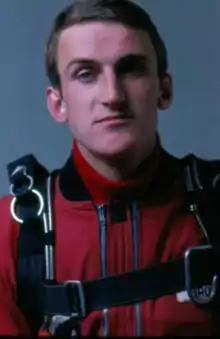 Bruce joined the British Army's Parachute Regiment as a Private in 1973 at the age of 17, and served with the regiment in Northern Ireland in the mid-1970s in Operation Banner.[6] From 1978 he spent four years with The Red Devils Display Team, participating in test-jumping, international exhibitions and competitions.[7] At the time of his death in 2002, with nearly 30 years in military and civilian parachuting, Bruce had logged over 8500 parachute jumps. His parachute log books show that he learnt his basic parachuting skills at Sibson Airfield, Peterborough from 1974 to 1978 prior to joining The Red Devils (Parachute Regiment) Display Team and achieved his D Rating in April 1979).