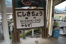 Nishikichō Station (錦町駅, Nishikichō-eki) is a railway station on the Nishikigawa Seiryū Line in Iwakuni, Yamaguchi Prefecture, Japan. It is operated by the Nishikigawa Railway, a third-sector railway company.