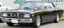 The 230 series was released in 1971 and was produced through 1975. The Cedric was now being built at the Tochigi factory location. The suspension configuration remained the same type as used in the second generation. Front disc brakes were added to the standard equipment list for some versions. The Cedric name was dropped for most export markets, with the car now called the Datsun 200C, 220C, 240C, or 260C. In many European markets this car was only available with the diesel engine, aiming in particular at the taxi market.[3] The Cedric was exclusive to Japanese Nissan dealership network called Nissan Bluebird Store as the senior luxury sedan to the Nissan Bluebird, while the Nissan Gloria, manufactured by the Prince Motor Company, was exclusive to Nissan Prince Store locations after the merger with Nissan, with the Nissan Skyline serving as the junior sedan and coupe to the Gloria.