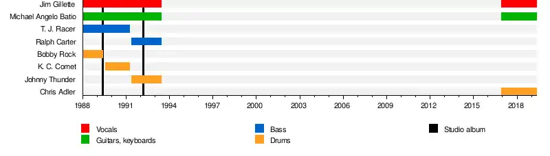 | Past members | Jim Gillette Michael Angelo Batio T. J. Racer Bobby Rock K. C. Comet Ralph Carter Johnny Thunder Chris Adler Victor Wooten |