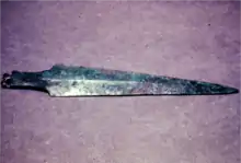 In the Middle Bronze (MB) Age (end of 3rd–middle of 2nd millennium BCE) hundreds of metal objects were found. The development of more complex weapons (longer daggers, swords, complex battle axes, etc.) was possible by alloying the copper with arsenic or with tin. All the MBII weapons that were analyzed were made of copper alloyed either with tin (14%–2% Sn) or with arsenic (4.3%–0.5% As), sometimes with a mixture of both usually in low concentrations. These changes in the metal properties of weapons are also reflected in the composition of small objects, like toggle pins that were probably made mainly from re-melting of scrap.[13] Lead (Pb) started to play a greater role as a major alloy for thick casts of copper-based objects, mainly of battle axes [14] during this period.