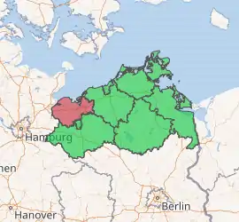 Nordwestmecklenburg (Northwestern Mecklenburg) is a Kreis (district) in the north-western part of Mecklenburg-Vorpommern, Germany. It is situated on the coast of the Baltic Sea and borders on Schleswig-Holstein to the west. Neighboring districts are (from east clockwise) Rostock, Ludwigslust-Parchim and the district-free city Schwerin, and the district Lauenburg and the district-free city Lübeck in Schleswig-Holstein. The district seat is the town Wismar.[2]