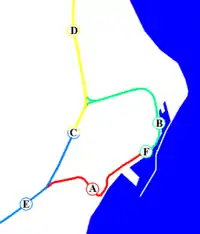 A: Hualien (former), B: Hualien Port,