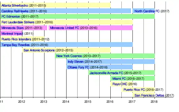 In February 2016, it was announced that the San Francisco Deltas would join the NASL in 2017.[99] Despite a championship season, the Deltas folded at the end of 2017.[100]