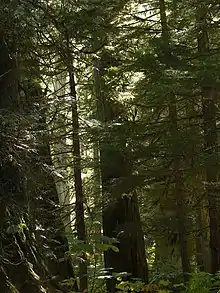 The North American inland temperate rainforest is a 7 million hectare disjunct temperate rainforest spreading over parts of British Columbia in Canada as well as Washington, Idaho and Montana on the US side.[1] Its patches are located on the windward slopes of the Rocky Mountains and the Columbia Mountains, extending roughly over 1000km from 54° North to 45° North.[2] It is one of the largest inland temperate and boreal rainforests in the world.[3]