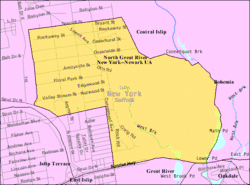 North Great River is a hamlet and census-designated place (CDP) in the Town of Islip, Suffolk County, New York, United States. The CDP population was 4,001 at the 2010 census.[1] The hamlet is served by the Islip Terrace Post Office (11752) and the East Islip School District.