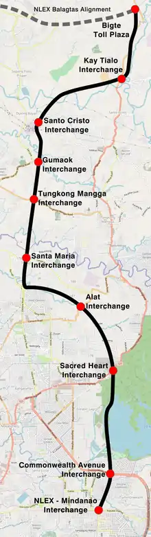 | From | Commonwealth Avenue (R-7), Balara, Quezon City North Luzon Expressway (R-8) in Guiguinto, Bulacan |