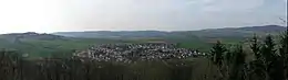 The North Palatine Uplands is also referred to locally as the "Old World" (German: alte Welt or in Palatinate German: die alt Welt or bucklige Welt).[4] However, sometimes the term alte Welt just refers to a strip of land on the border of the districts of Kusel and Kaiserslautern, which is roughly demarcated by the 420, 270 and 48 federal highways and the A 6 and A 63 motorways. Depending on how the region is defined, its largest village is either Nußbach or Obermoschel.