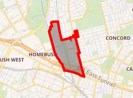 The western part of this suburb was originally part of Homebush, while the eastern part was part of Concord.