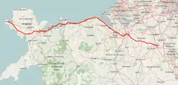 The North Wales Coast Line (Welsh: Rheilffordd Arfordir Gogledd Cymru), also known as the North Wales Main Line,[1] is a major railway line in the north of Wales, running from Crewe on the West Coast Main Line to Holyhead on the Isle of Anglesey.