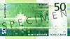 50 kr | 126 × 70 | Green | Utvær Lighthouse | Stylized lighthouse beacon | 2018 | ||