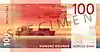 100 kr | 133 × 70 | Red | Gokstad ship | Stylized Container ship and Orion | 2017 | ||