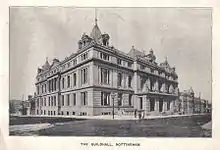 Nottingham Guildhall was built in 1887 to 1888 to replace the previous Nottingham Guild Hall on Weekday Cross. Following a competition with Alfred Waterhouse as the judge, the French Renaissance Revival design by the architects Thomas Verity and George Henry Hunt was chosen. Gabbutts of Liverpool were chosen as contractors much to the annoyance of local building companies.[2]