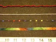 Metallic fibers are often classified as fancy yarns and are created by adding a metallic fiber or yarn to the blend.[4] These are not to be confused with actual wire used in jewellery that is sometimes knit or crocheted.