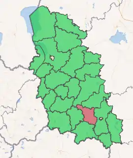Novosokolnichesky District (Russian: Новосо́кольнический райо́н) is an administrative[1] and municipal[2] district (raion), one of the twenty-four in Pskov Oblast, Russia. It is located in the south of the oblast and borders with Loknyansky District in the north, Velikoluksky District in the east, Nevelsky District in the south, Pustoshkinsky District in the west, and with Bezhanitsky District in the northwest. The area of the district is 1,616.0 square kilometers (623.9 sq mi).[3] Its administrative center is the town of Novosokolniki.[2] Population: 14,776 (2010 Census);[4] 19,389 (2002 Census);[7] 21,319 (1989 Census).[8] The population of Novosokolniki accounts for 54.9% of the district's total population.[4]