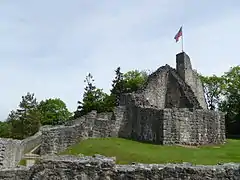 Obere Burg ("Upper Castle"), also known colloquially as Burg Neu-Schellenberg ("Castle of Neu-Schellenberg"), is a castle ruin located in the municipality of Schellenberg, Liechtenstein. It lies at the western edge of Hinterschloss, one of the burroughs in the village of Neu-Schellenberg. It is freely open to tourists. Due to its close proximity to Hinterschloss, it is probably the most easily accessible of all Liechtenstein castles.[2][3][4] Obere Burg is one of the five existing castles in Liechtenstein and one of the three ruined ones in the country.