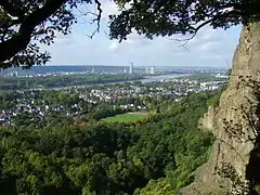 Oberkassel seen from its abandonend quarry – in background, on the other side of the Rhine, Bad Godesberg and Bonn