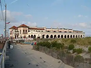 The ship Sindia joined other shipwrecks on the beach on December 15, 1901, on its way to New York City from Kobe, Japan, but has since sunk below the sand. A salvage attempt to retrieve treasures believed to have been on the ship was most recently launched in the 1970s, all of which have been unsuccessful.[39] In 1920, the Chamber of Commerce adopted the slogan "America's Greatest Family Resort".[40][34] A large fire in 1927 caused $1.5 million in damage and led the city to move the boardwalk closer to the ocean, which resulted in the greater potential for damage from saltwater.[41]