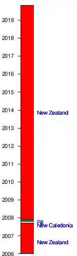 - ^ In 2005, 2008, 2015 and 2017, no OFC qualifiers for the FIFA Beach Soccer World Cup were held and teams were selected to represent OFC (2005: Australia; 2008: Solomon Islands; 2015 and 2017: Tahiti).