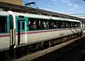 Standard-class seating is arranged 2+2 abreast with a seat pitch of 1,000 mm (39 in).[3] The "Super seating" on the upper decks of cars 3 and 4 is arranged 2+1 abreast with a seat pitch of 1,100 mm (43 in).[3] All passenger saloons are designated no-smoking.[1] cars 2 and 6 are equipped with toilets.[1]