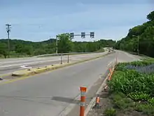 When it was established in 1937, SR 682 ran from the SR 56 junction just southwest of Athens to the point where SR 682 currently meets the connector road to US 33 just southwest of Chauncey, and northwest of where SR 682 crosses over the Hocking River. At the time, this was where SR 682 met the predecessor to what would later become the first routing of US 33 through this area, known at the time as SR 31.[3][4] By 1961, a new stretch of expressway opened to the south of Chauncey. A re-routing of US 33 out of Chauncey and onto this new expressway resulted in an extension of SR 682 northeasterly into the village along the former two-lane routing of US 33 up to the state highway's current northern terminus at the SR 13 junction (the remainder of the old 33 became an extension for SR 13).[5][6] By 1969, SR 682 was extended southeasterly through Athens to its current southern terminus at US 33, US 50, and SR 32.[7][8]