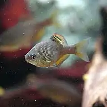 The oily bitterling (Tanakia limbata) is a temperate freshwater fish belonging to the Acheilognathinae sub-family of the family Cyprinidae. It originates in creeks with fast-running water in central and southern Japan. It was originally described as Capoeta limbata by Temminck & Schlegel in 1846, and has also been referred to as Acheilognathus limbatus and Acheilognathus limbata in scientific literature. The fish reaches a size of up to 6 cm (2.4 in) TL.[1]