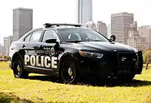 In 2012, OCPD began transitioning to the Ford Police Interceptor Sedan and Ford Police Interceptor Utility for patrol officers. In appearance, the vehicles are all black. The word "POLICE" is printed in large white letters on the side doors, and "We Serve With Pride" appears above the rear wheel wells. The seal of the City of Oklahoma City appears on the front doors. An abbreviation denoting the division that the vehicle is assigned to appears on the rear trunk (HF-Hefner, SW-Southwest, SF-Santa Fe, SL-Springlake, BT-Bricktown, WRWA-Will Rogers World Airport, US-Uniform Support, BP-Bike Patrol, G-Gang Unit, T-Traffic). Also printed on the rear trunk area is the car number with the word "POLICE" in small white letters.[2]